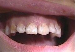 lámina fina de cerámica que se adhiere a la superficie frontal del diene. Su finalidad es estética ya que puede modificar la forma, color y en cierta manera la posición de los dientes anteriores.